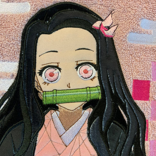 Drap de bain 140 x 70 cm coton brodé Nezuko