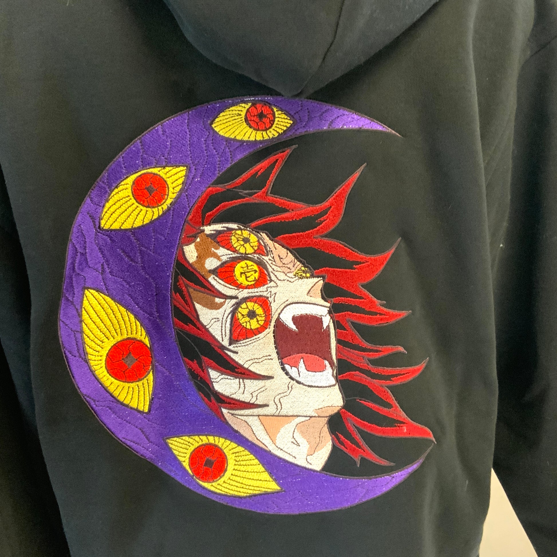 Sweatshirt à capuche brodé noir « Kokushibo »Demon Slayer