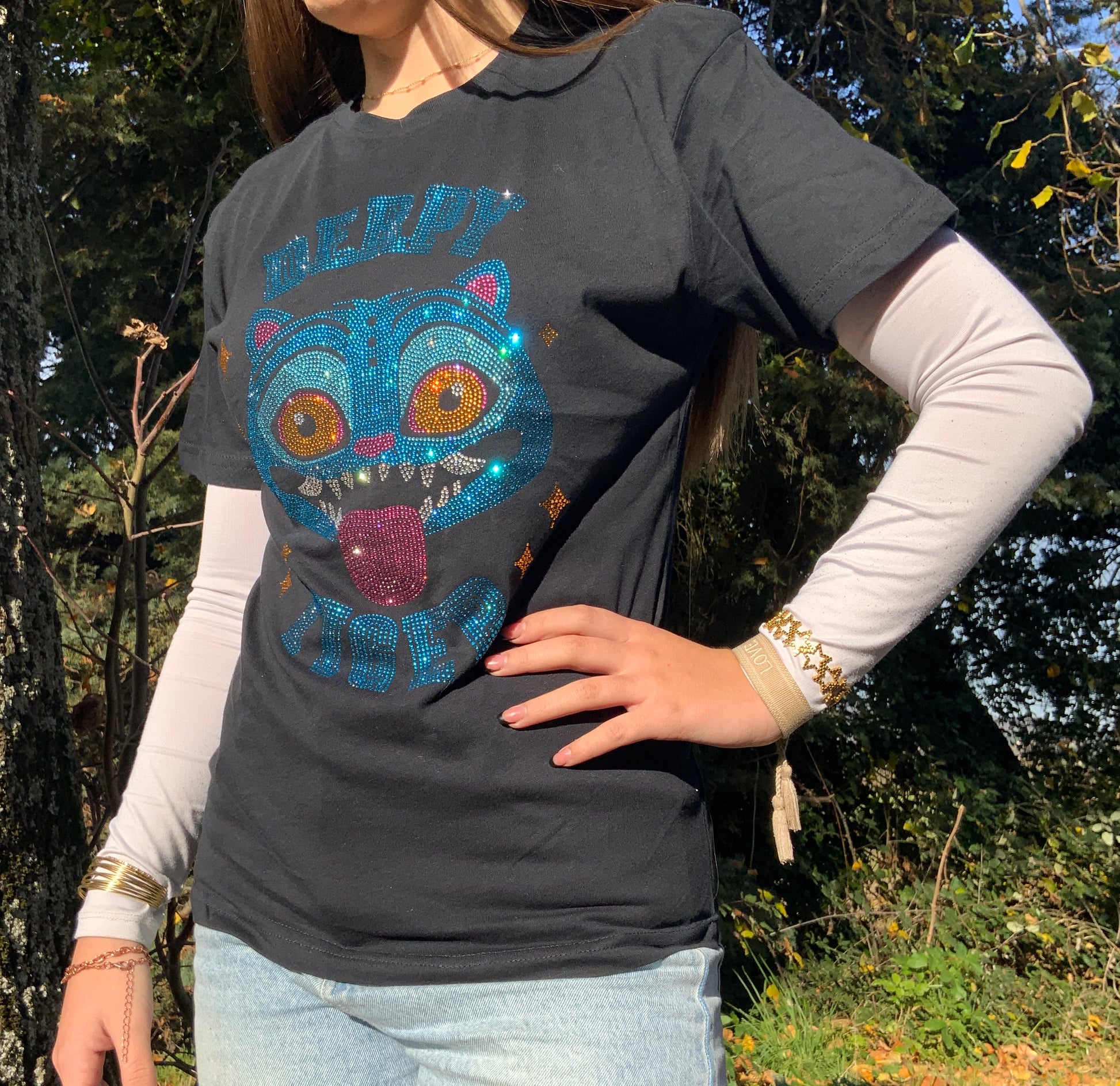 T-shirt noir Strass Derpy Tiger Kpop Demon Hunter